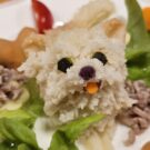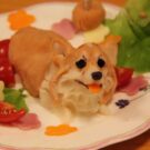ケーキはマッシュポテトにお野菜や果物の汁で色をお付けしてます。