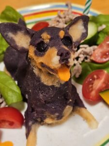 ケーキはマッシュポテトにお野菜や果物の汁で色をお付けしてます。