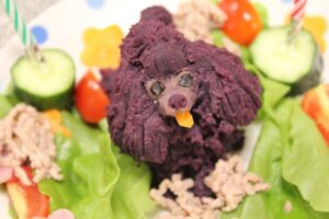 ケーキはマッシュポテトにお野菜や果物の汁で色をお付けしてます。