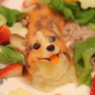 ケーキはマッシュポテトにお野菜や果物の汁で色をお付けしてます。