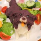 ケーキはマッシュポテトにお野菜や果物の汁で色をお付けしてます。